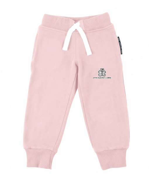 Dětské tepláky s originálním potiskem pro děti s potiskem 1188 CÍTÍM ČLOVÍČKY V BŘIŠE v barvě OLD PINK