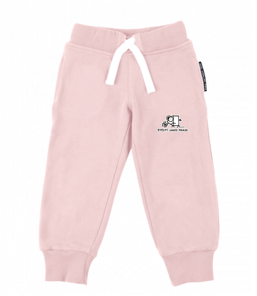 Dětské tepláky s originálním potiskem pro děti s potiskem 1220 ŠTĚSTÍ JAKO PRASE v barvě OLD PINK