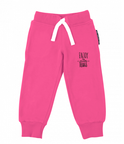 Dětské tepláky s originálním potiskem pro děti s potiskem 1222 ENJOY THE LITTLE THINGS v barvě INDIAN LILA