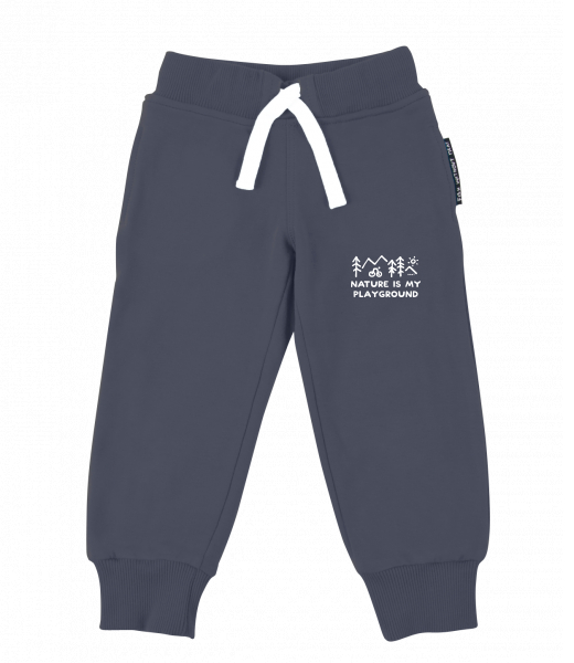 Dětské tepláky s originálním potiskem pro děti s potiskem 1223 NATURE IS MY PLAYGROUND v barvě GRAY INK