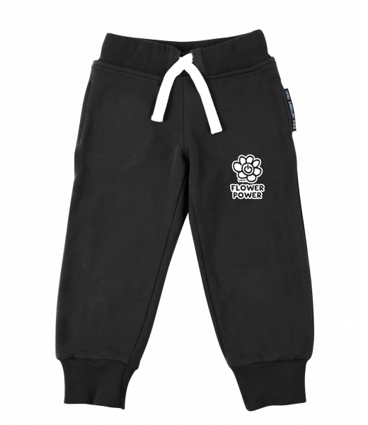 Dětské tepláky s originálním potiskem pro děti s potiskem 1227 FLOWER POWER v barvě BLACK