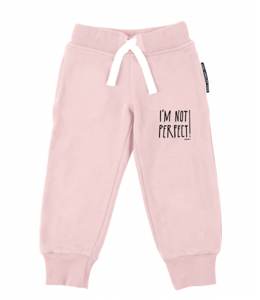 Dětské tepláky s originálním potiskem pro děti s potiskem 1230 IM NOT PERFECT v barvě OLD PINK