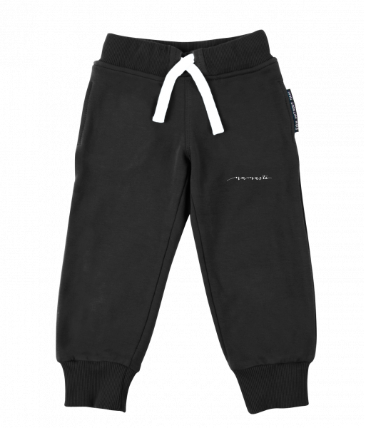 Dětské tepláky s originálním potiskem pro děti s potiskem 1234 NAMASTE v barvě BLACK