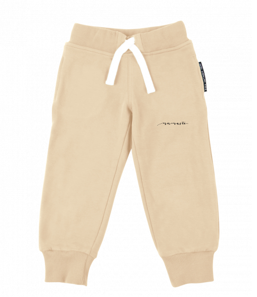 Dětské tepláky s originálním potiskem pro děti s potiskem 1234 NAMASTE v barvě CARAMEL