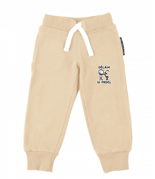 Dětské tepláky s originálním potiskem pro děti s potiskem 1235 DĚLÁM SI PRDEL v barvě CARAMEL