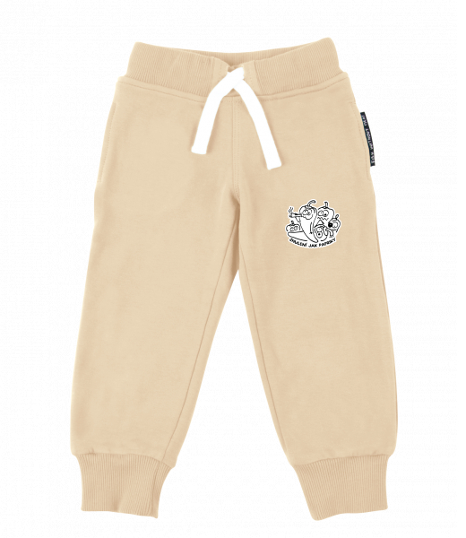 Dětské tepláky s originálním potiskem pro děti s potiskem 1245 ZHULENÍ JAK PAPRIKY v barvě CARAMEL