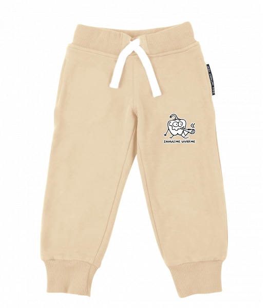Dětské tepláky s originálním potiskem pro děti s potiskem 1246 ZHULÍME UVIDÍME v barvě CARAMEL