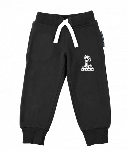Dětské tepláky s originálním potiskem pro děti s potiskem 1248 MÁM OBĚ RUCE LEVÉ v barvě BLACK