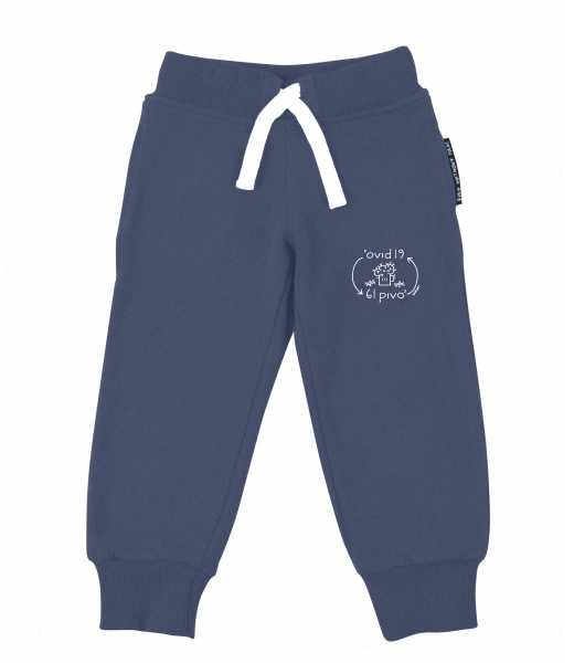 Dětské tepláky s originálním potiskem pro děti s potiskem 1297 COVID 6L PIVO v barvě JEANS