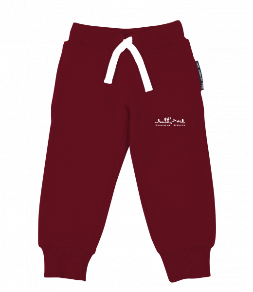 Dětské tepláky s originálním potiskem pro děti s potiskem 1355 MILUJEME BESKYDY 1 v barvě DARK RED