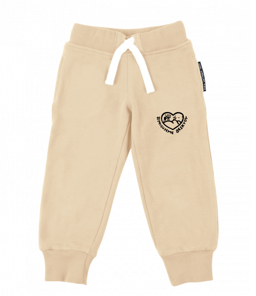 Dětské tepláky s originálním potiskem pro děti s potiskem 1356 MILUJEME BESKYDY 2 v barvě CARAMEL
