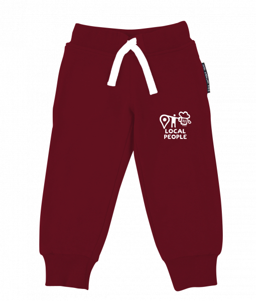 Dětské tepláky s originálním potiskem pro děti s potiskem 1360 LOCAL PEOPLE BIG v barvě DARK RED