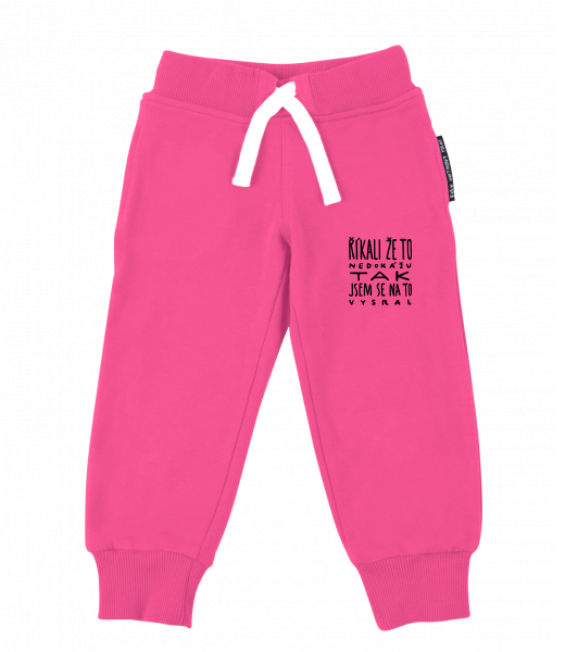 Dětské tepláky s originálním potiskem pro děti s potiskem 1366 ŘÍKALI ŽE TO NEDOKÁŽU TAK JSEM SE NA TO VYSRAL v barvě INDIAN LILA