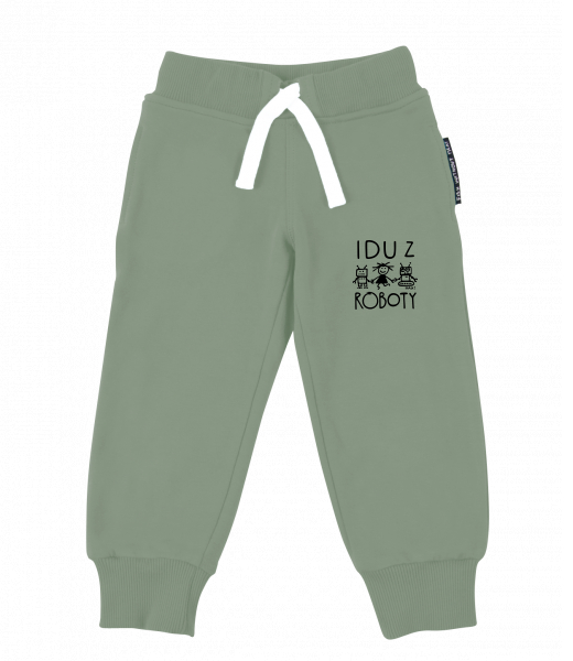 Dětské tepláky s originálním potiskem pro děti s potiskem 1370 IDU Z ROBOTY v barvě OLIVA