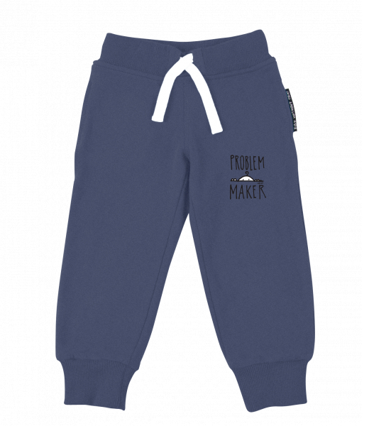 Dětské tepláky s originálním potiskem pro děti s potiskem 1385 PROBLEM MAKER v barvě JEANS
