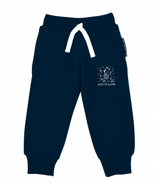 Dětské tepláky s originálním potiskem pro děti s potiskem 1387 NEJLEPŠÍ TÁTA VE VESMÍRU v barvě DARK NAVY
