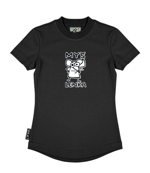 Vyrábíme udržitelné oblečení UAX! - ručně šité v Česku uaxDěti uaxVšechny produktyTričkaDÍVČÍ TRIČKOpotisk 1038 - MYŠ LENKABLACK