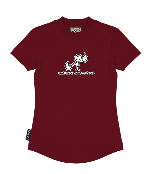 Vyrábíme udržitelné oblečení UAX! - ručně šité v Česku uaxDěti uaxVšechny produktyTričkaDÍVČÍ TRIČKOpotisk 1081 - STAČÍ KAPKA A UŽ TO ŤAPKÁDARK RED