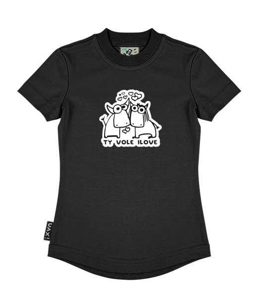 Vyrábíme udržitelné oblečení UAX! - ručně šité v Česku uaxDěti uaxVšechny produktyTričkaDÍVČÍ TRIČKOpotisk 1089 - TY VOLE I LOVEBLACK