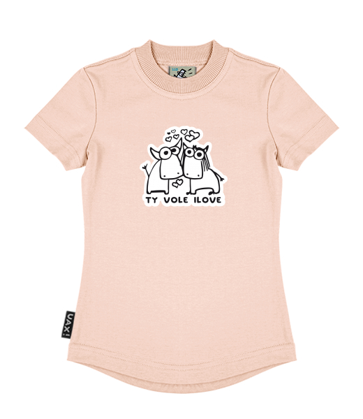 Vyrábíme udržitelné oblečení UAX! - ručně šité v Česku uaxDěti uaxVšechny produktyTričkaDÍVČÍ TRIČKOpotisk 1089 - TY VOLE I LOVECAPPUCINO