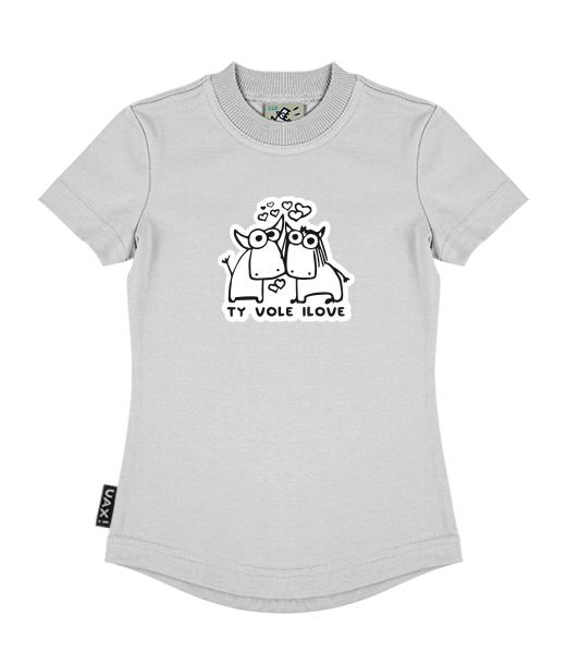 DÍVČÍ TRIČKO pro děti s potiskem 1089 TY VOLE I LOVE v barvě CEMENT