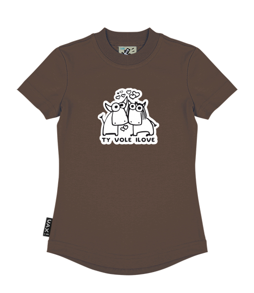 Vyrábíme udržitelné oblečení UAX! - ručně šité v Česku uaxDěti uaxVšechny produktyTričkaDÍVČÍ TRIČKOpotisk 1089 - TY VOLE I LOVECHESTNUT