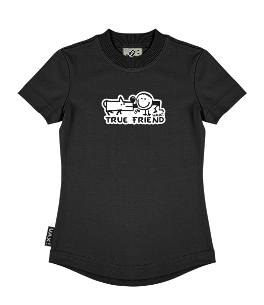 Vyrábíme udržitelné oblečení UAX! - ručně šité v Česku uaxDěti uaxVšechny produktyTričkaDÍVČÍ TRIČKOpotisk 1123 - TRUE FRIENDBLACK