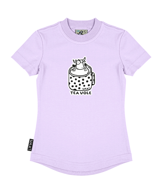 Vyrábíme udržitelné oblečení UAX! - ručně šité v Česku uaxDěti uaxVšechny produktyTričkaDÍVČÍ TRIČKOpotisk 1124 - TEA VOLELAVENDER
