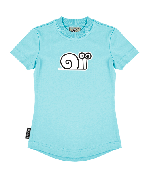 Vyrábíme udržitelné oblečení UAX! - ručně šité v Česku uaxDěti uaxVšechny produktyTričkaDÍVČÍ TRIČKOpotisk 1153 - ŠNEKPASTEL BLUE