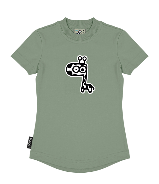 Vyrábíme udržitelné oblečení UAX! - ručně šité v Česku uaxDěti uaxVšechny produktyTričkaDÍVČÍ TRIČKOpotisk 1155 - ŽIRAFAOLIVA