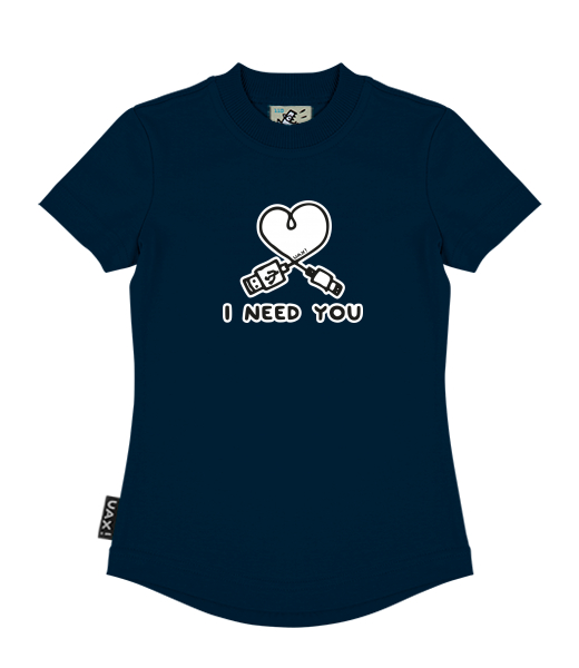 Vyrábíme udržitelné oblečení UAX! - ručně šité v Česku uaxDěti uaxVšechny produktyTričkaDÍVČÍ TRIČKOpotisk 1206 - I NEED YOU 2DARK NAVY