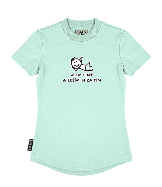 DÍVČÍ TRIČKO pro děti s potiskem 1217 JSEM LÍNÝ A LEŽÍM SI ZA TÍM v barvě MINT