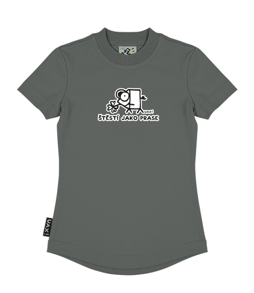 Vyrábíme udržitelné oblečení UAX! - ručně šité v Česku uaxDěti uaxVšechny produktyTričkaDÍVČÍ TRIČKOpotisk 1220 - ŠTĚSTÍ JAKO PRASEDARK GRAY
