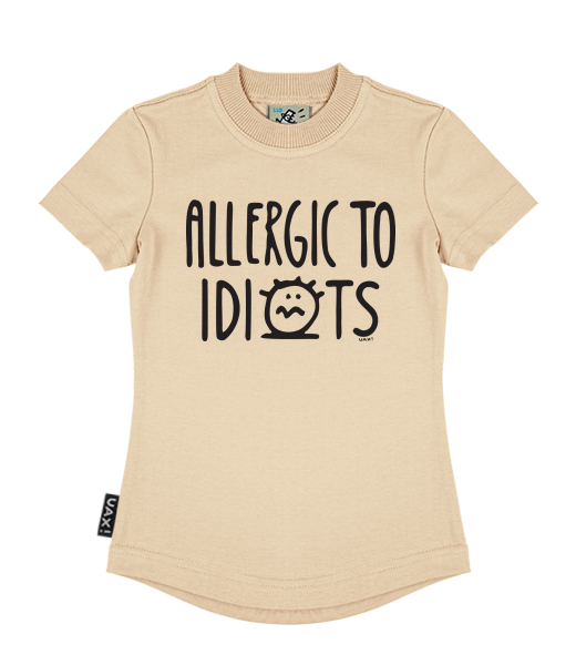Vyrábíme udržitelné oblečení UAX! - ručně šité v Česku uaxDěti uaxVšechny produktyTričkaDÍVČÍ TRIČKOpotisk 1354 - ALLERGIC TO IDIOTSCARAMEL