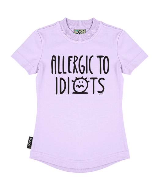 Vyrábíme udržitelné oblečení UAX! - ručně šité v Česku uaxDěti uaxVšechny produktyTričkaDÍVČÍ TRIČKOpotisk 1354 - ALLERGIC TO IDIOTSLAVENDER