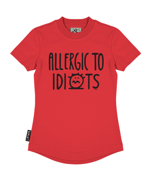 Vyrábíme udržitelné oblečení UAX! - ručně šité v Česku uaxDěti uaxVšechny produktyTričkaDÍVČÍ TRIČKOpotisk 1354 - ALLERGIC TO IDIOTSRED