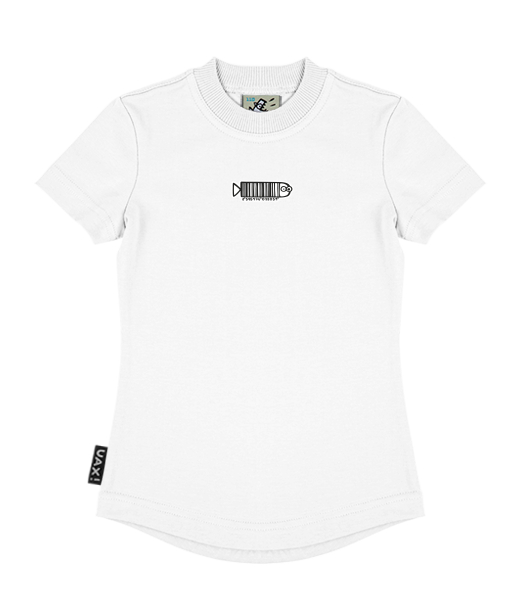 Vyrábíme udržitelné oblečení UAX! - ručně šité v Česku uaxDěti uaxVšechny produktyTričkaDÍVČÍ TRIČKOpotisk 71 - FISHBARCODEWHITE