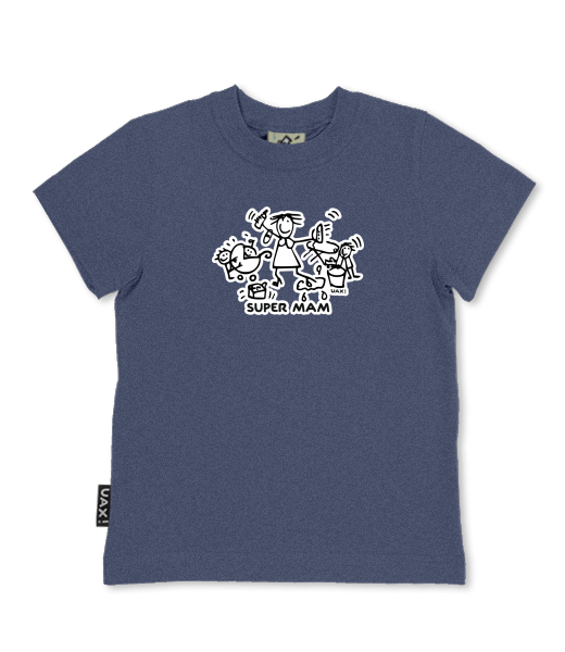 Dětské trička - SKRATCHILD pro děti s potiskem 1126 SUPER MAM v barvě JEANS