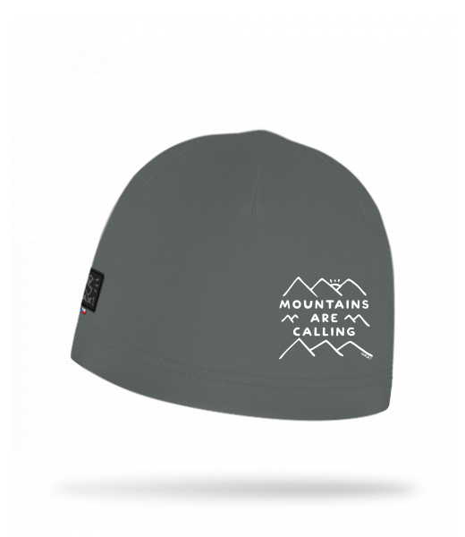 Vyrábíme udržitelné oblečení UAX! - ručně šité v Česku uaxDoplňky uaxCyklistická kolekceČepice a čelenkyČEPICE ORIGINALpotisk 1204 - MOUNTAINS ARE CALLINGDARK GRAY