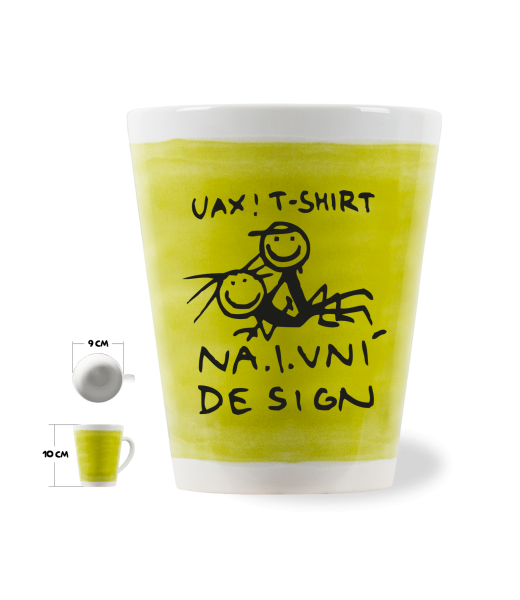 Originální HRNEK LATTE UAX! s uchem o objemu 0,25L se stane stylovým doplňkem do Vašich domácností. Mix & Match - Vybírej z mnoha originálních potisků a kombinuj anilinové barvy podkladu. HRNEK LATTE 0,25L vyrábíme tak, že nejdříve provádíme vytištění předlohy potisku na přenosový papír na stroji Mimaki TS5 a následnou sublimaci pomoci sublimačního lisu. Tiskneme na hrnky se spec. povrchovou úpravou pro potisk, kdy základní barva hrnku je bílá.