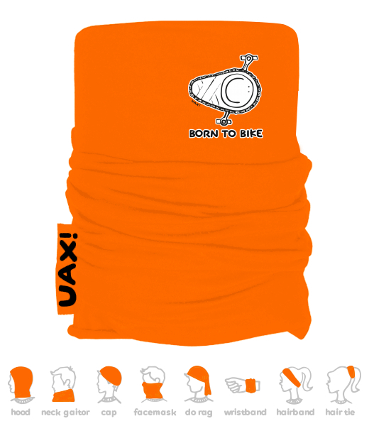 Vyrábíme udržitelné oblečení UAX! - ručně šité v Česku uaxDoplňky uaxCyklistická kolekceMultifunkční šátkyMULTIFUNKČNÍ BAVLNĚNÝ ŠÁTEKpotisk 1074 - BORN TO BIKESIGNAL ORANGE