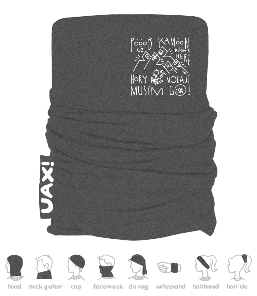 Vyrábíme udržitelné oblečení UAX! - ručně šité v Česku uaxDoplňky uaxCyklistická kolekceMultifunkční šátkyMULTIFUNKČNÍ BAVLNĚNÝ ŠÁTEKpotisk 1368 - POOOĎ KAMOON HORY MUSÍM JÍT GOGRAFIT