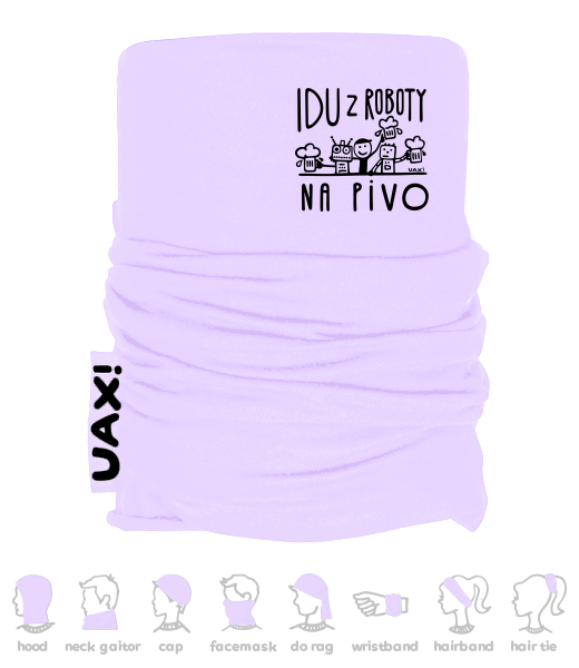 Vyrábíme udržitelné oblečení UAX! - ručně šité v Česku uaxDoplňky uaxCyklistická kolekceMultifunkční šátkyMULTIFUNKČNÍ BAVLNĚNÝ ŠÁTEKpotisk 1369 - IDU Z ROBOTY NA PIVOLAVENDER