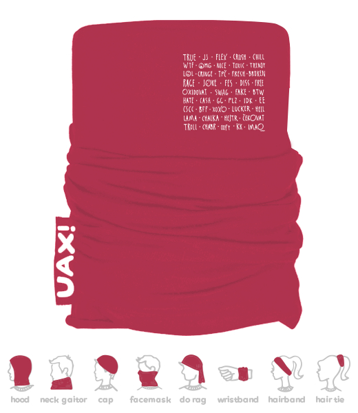 Multifunkční bavlněný šátek s potiskem UAX! Vyrobeno z 100% bavlny, na přední straně možnost výběru potisku. Výběr z mnoha barev. Multifunkční bavlněné šátky jsou šity a potisknuty sítotiskem v České republice!