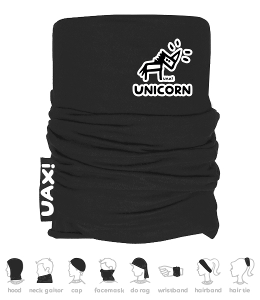 Vyrábíme udržitelné oblečení UAX! - ručně šité v Česku uaxDoplňky uaxCyklistická kolekceMultifunkční šátkyMULTIFUNKČNÍ BAVLNĚNÝ ŠÁTEKpotisk 1376 - UNICORNBLACK