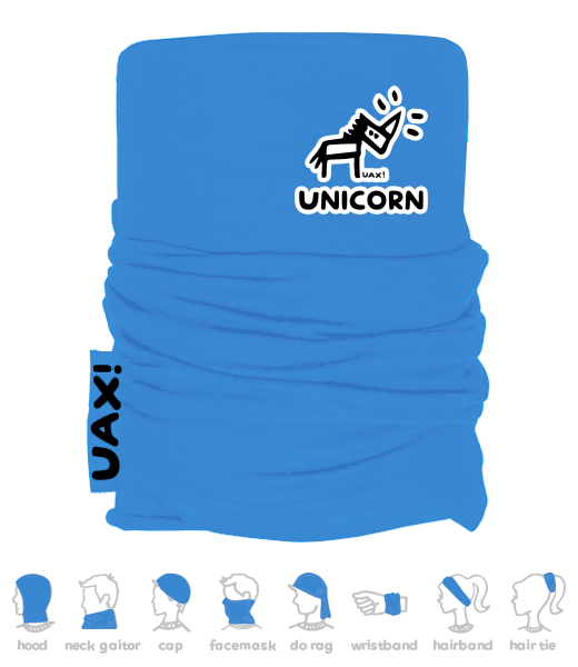 Vyrábíme udržitelné oblečení UAX! - ručně šité v Česku uaxDoplňky uaxCyklistická kolekceMultifunkční šátkyMULTIFUNKČNÍ BAVLNĚNÝ ŠÁTEKpotisk 1376 - UNICORNCAPRI BLUE