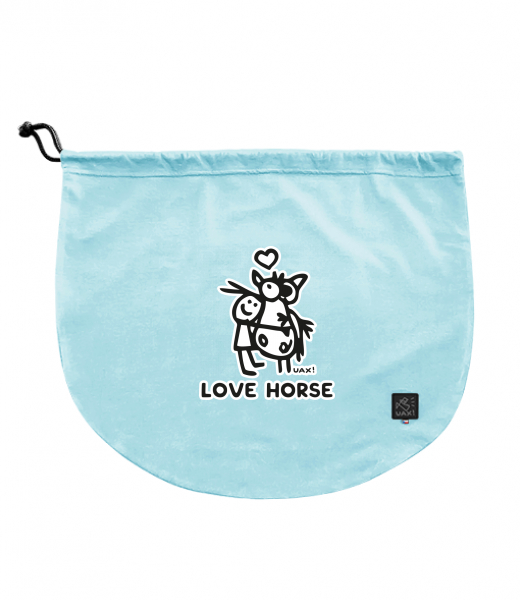 Vyrábíme udržitelné oblečení UAX! - ručně šité v Česku uaxDoplňky uaxCyklistická kolekceTašky a pytlíkyBAVLNĚNÝ OBAL NA HELMUpotisk 1219 - LOVE HORSEPASTEL BLUEUNI