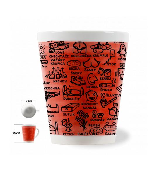 HRNEK LATTE 0,25L NÁŘEČÍ Domácí design a doplňky s potiskem 1261 BRNĚNSKÝ HANTEC v barvě TOMATO