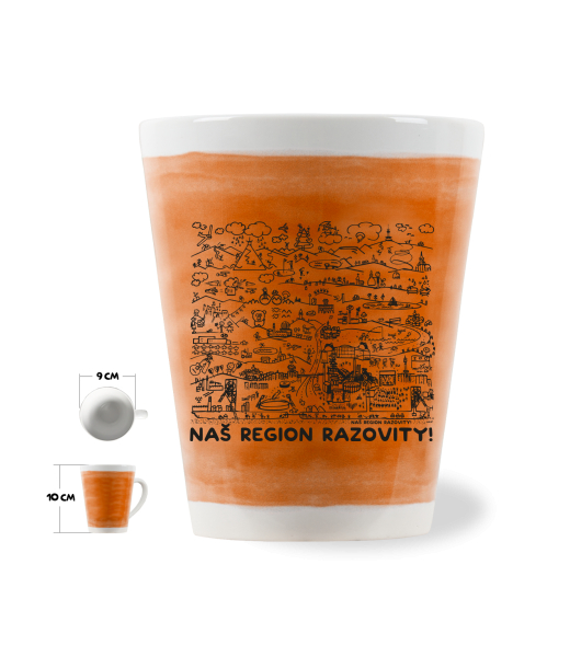 Vyrábíme udržitelné oblečení UAX! - ručně šité v Česku uaxDoplňky uaxDomácí design a doplňkyHrnkyHRNEK LATTE 0,25Lpotisk 1267 - REGION RAZOVITYSIGNAL ORANGE