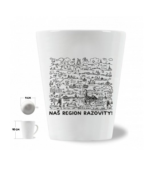 Vyrábíme udržitelné oblečení UAX! - ručně šité v Česku uaxDoplňky uaxDomácí design a doplňkyHrnkyHRNEK LATTE 0,25Lpotisk 1267 - REGION RAZOVITYWHITE